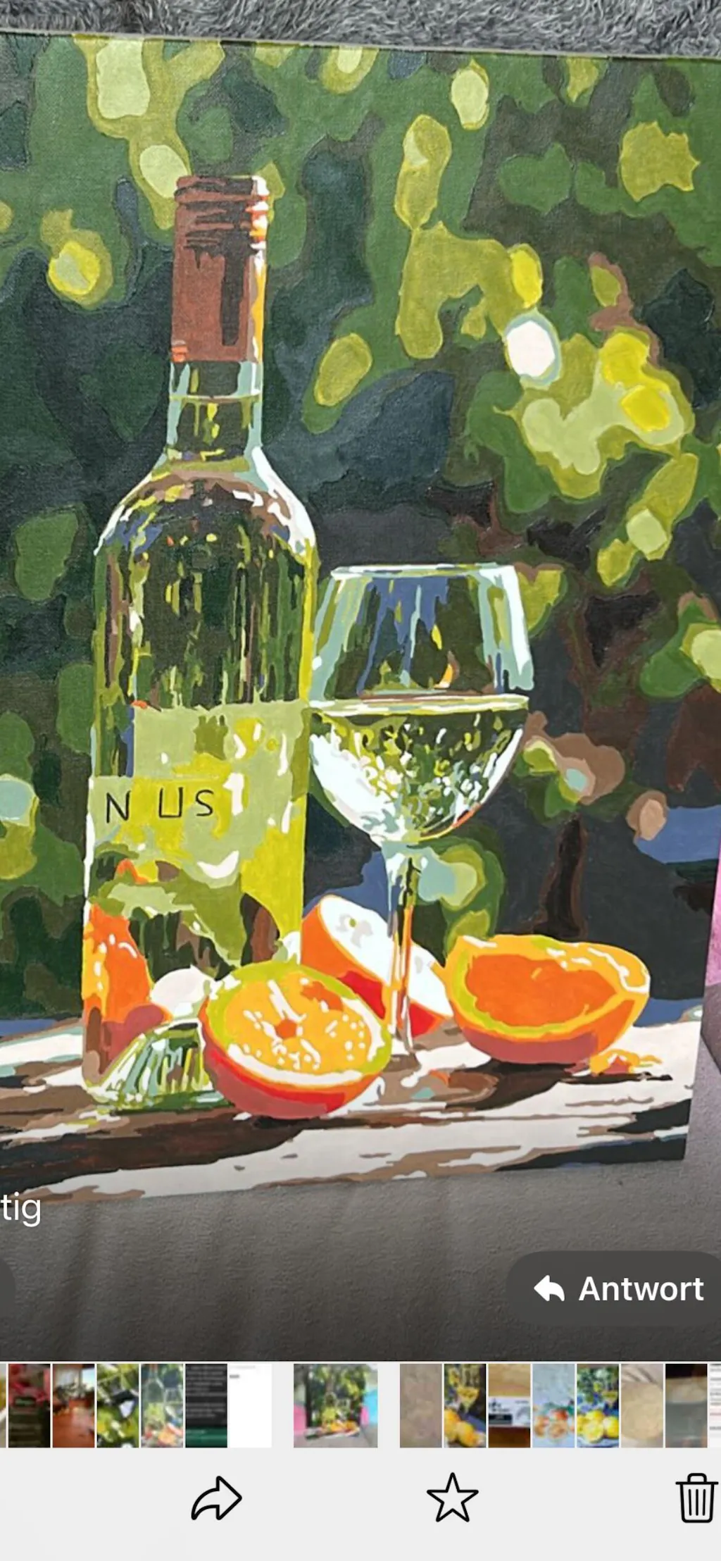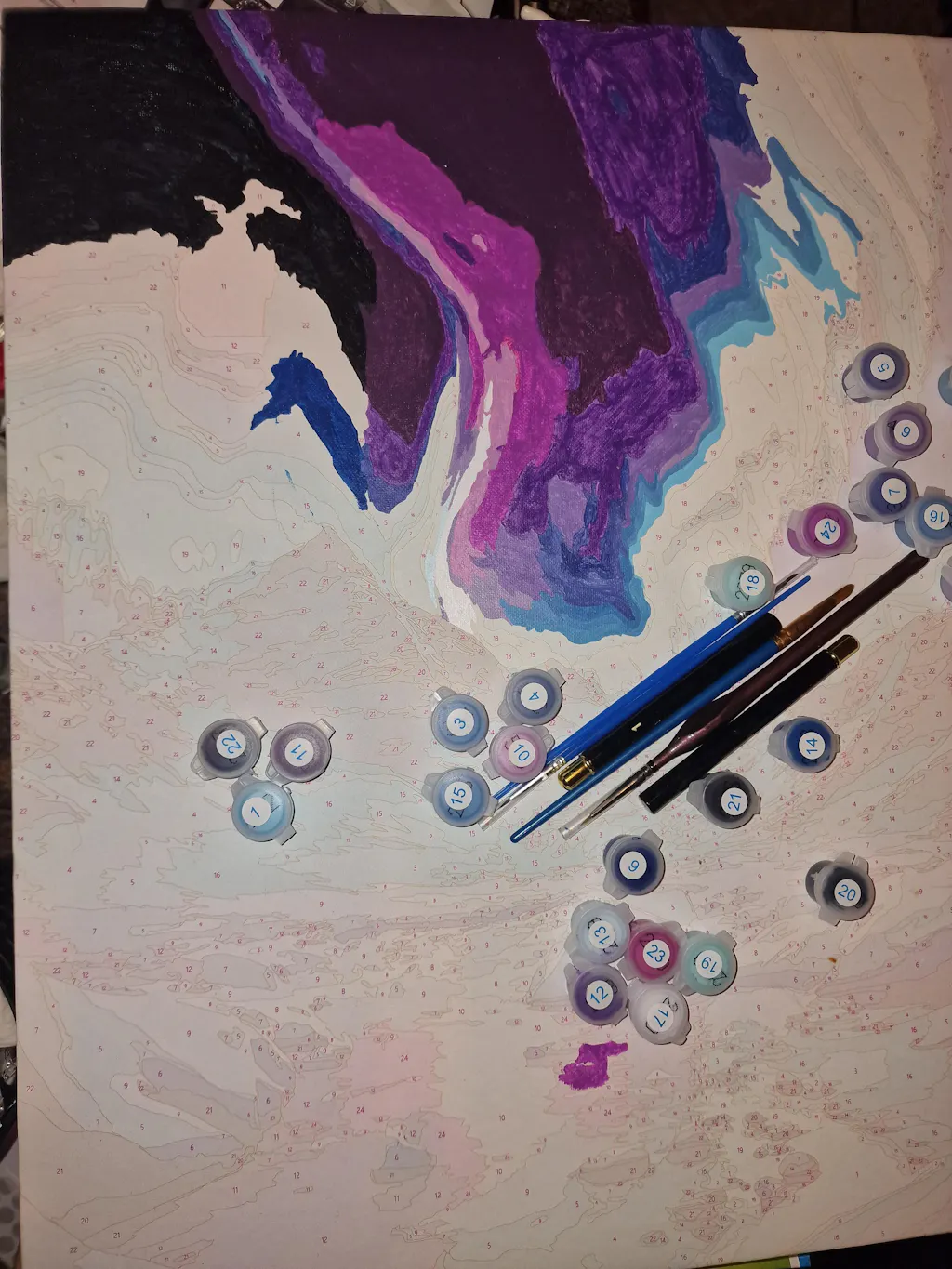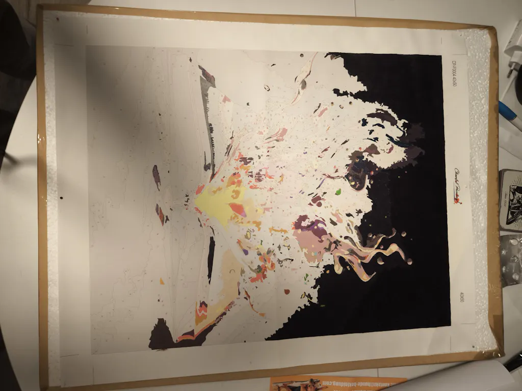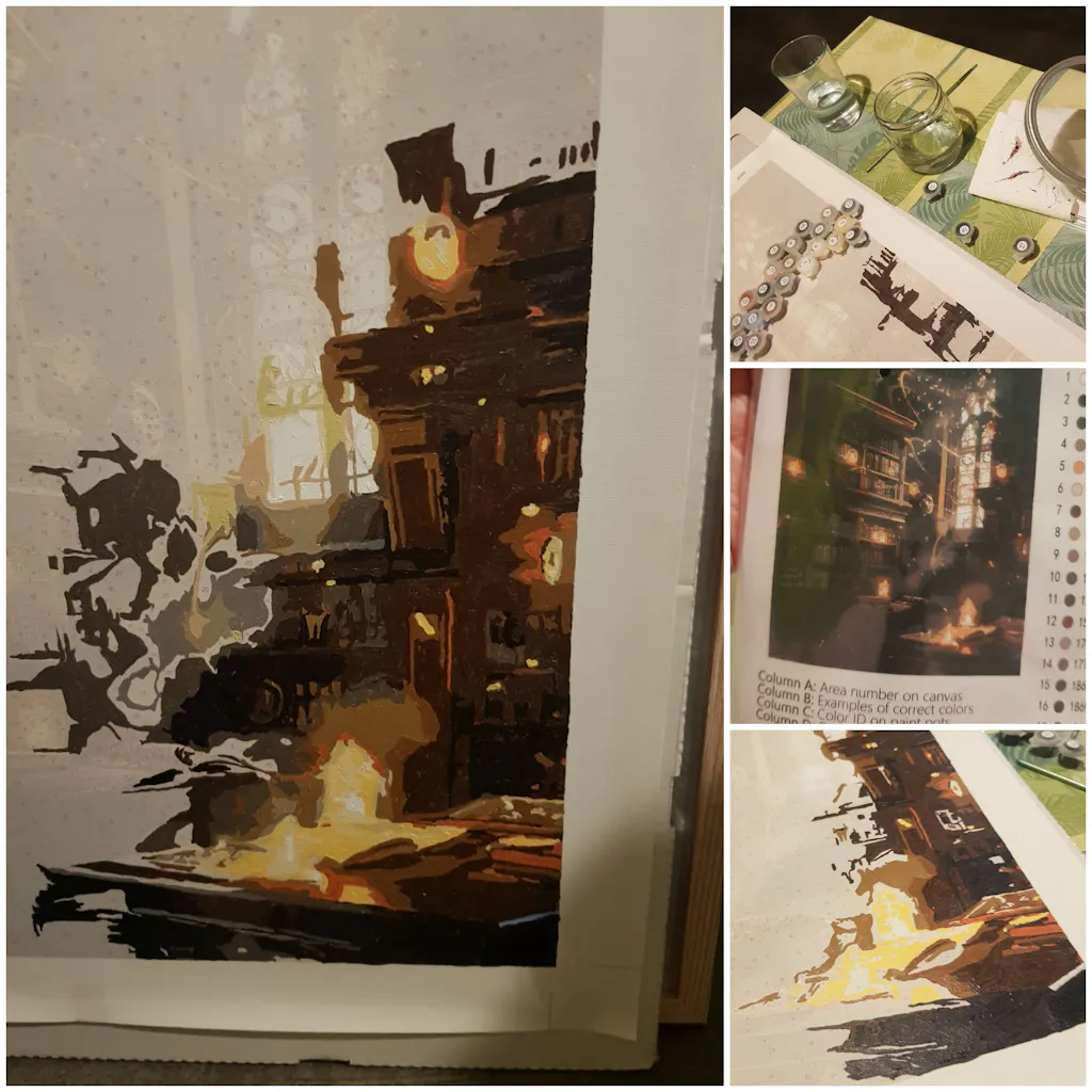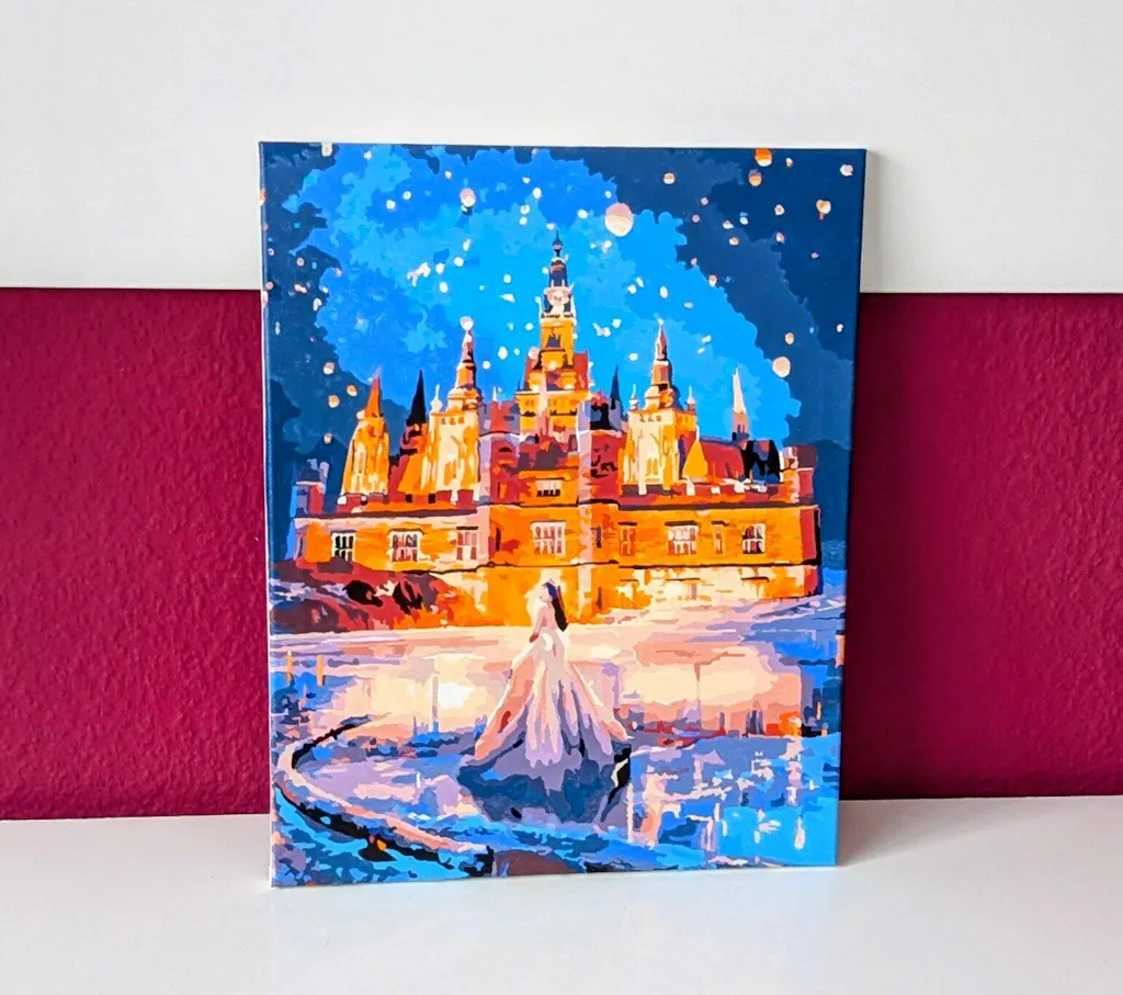 Ein sehr schönes Bild! Leider war die grüne Farbe zu knapp, deshalb müsste ich sie nachbestellen. Die verschwommenen Umrisse und die vielen kleinen Details haben das Malen nicht gerade leicht gemacht.