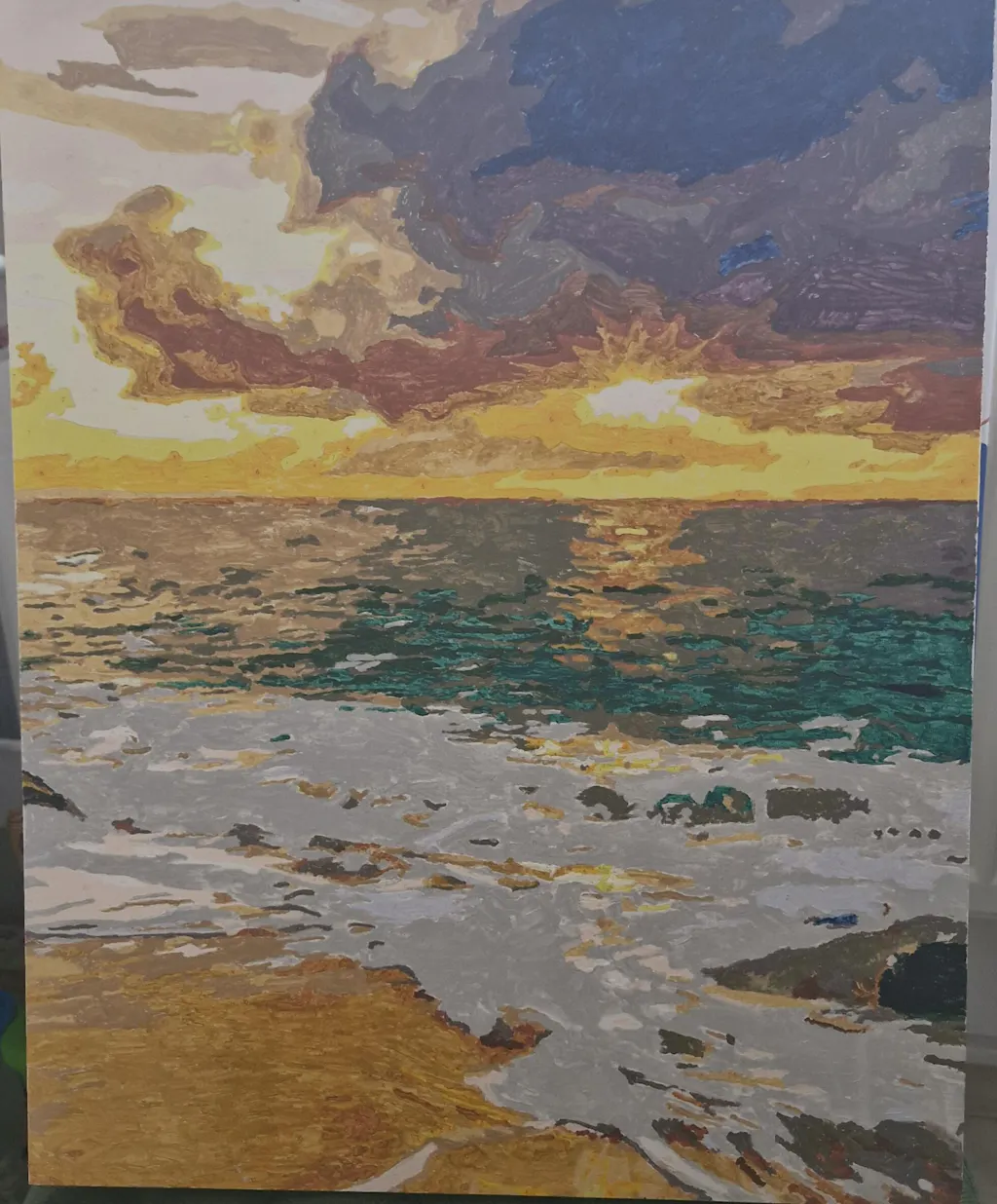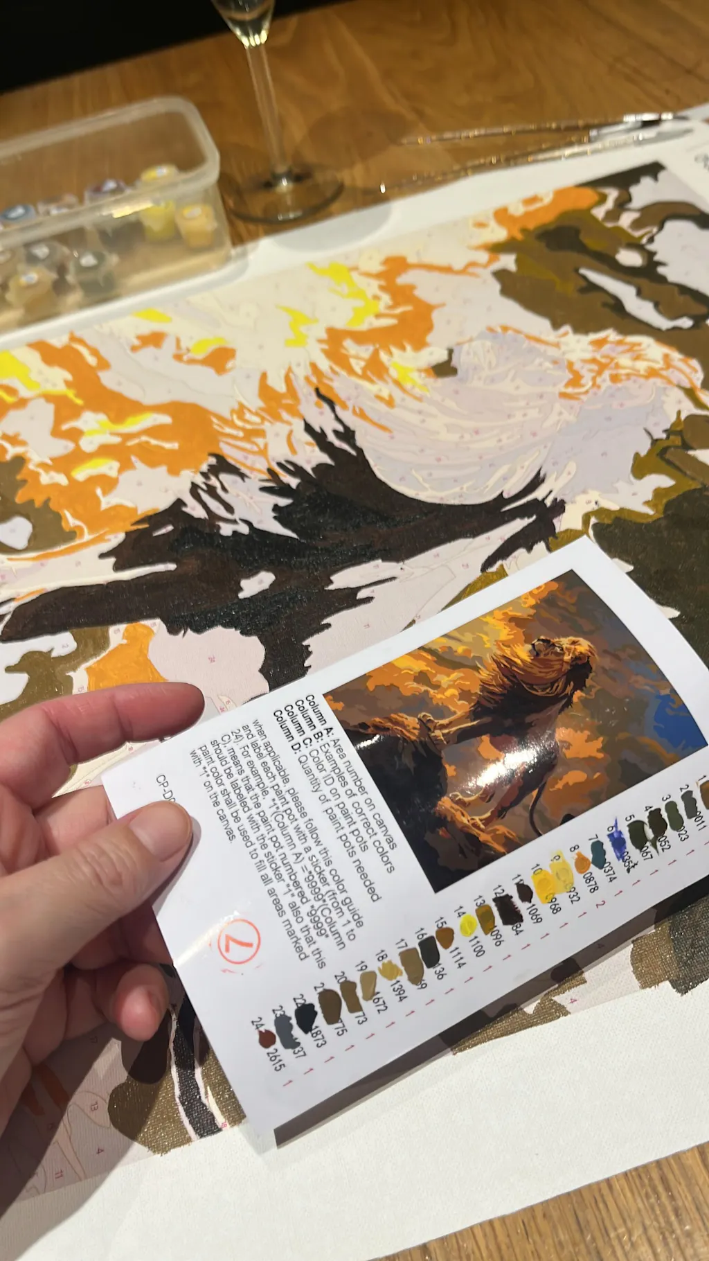 Ich habe dieses Bild für eine Freundin gekauft, also nicht selber gemalt. Sie hat das Bild kürzlich fertig gemalt und war sehr zufrieden mit den Farben sowie auch der Aufteilung der Flächen und dem Decken der Farben, speziell dem übermalen der Zahlen. Um einiges besser als bei einem anderen Anbieter. Auch gut, dass die Bilder und deren Utensilien in Folie eingepackt waren.