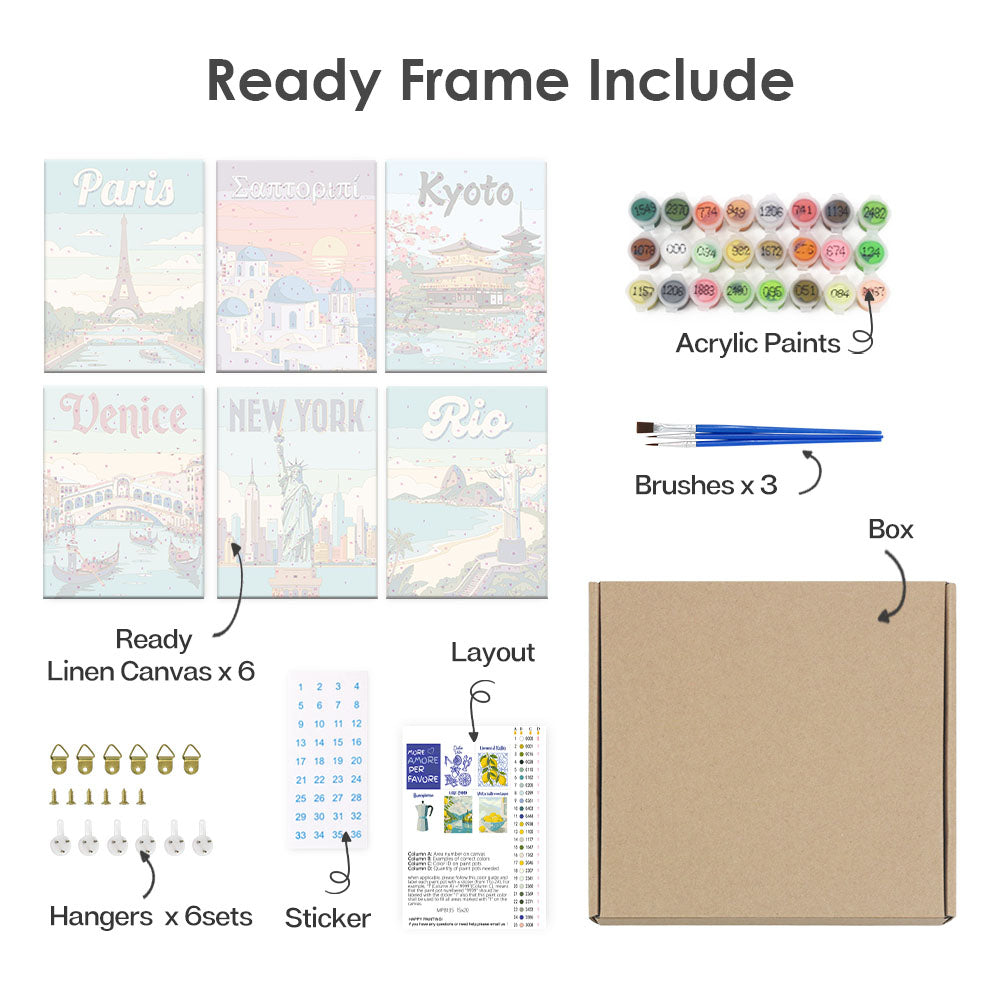 Entdecken Sie alle wichtigen Dinge, die in unserem Malen-nach-Zahlen-Set ordentlich verpackt sind. Da jede Komponente beschriftet und einsatzbereit ist, können Sie sich ganz auf Ihre künstlerische Reise konzentrieren. Von den leuchtenden Farben bis zu den Präzisionspinseln haben wir dafür gesorgt, dass nichts zwischen Ihnen und Ihrer Leinwand steht. Dieses Set ist sowohl für Anfänger als auch für erfahrene Künstler geeignet und bietet ein reines, ungestörtes Malerlebnis.