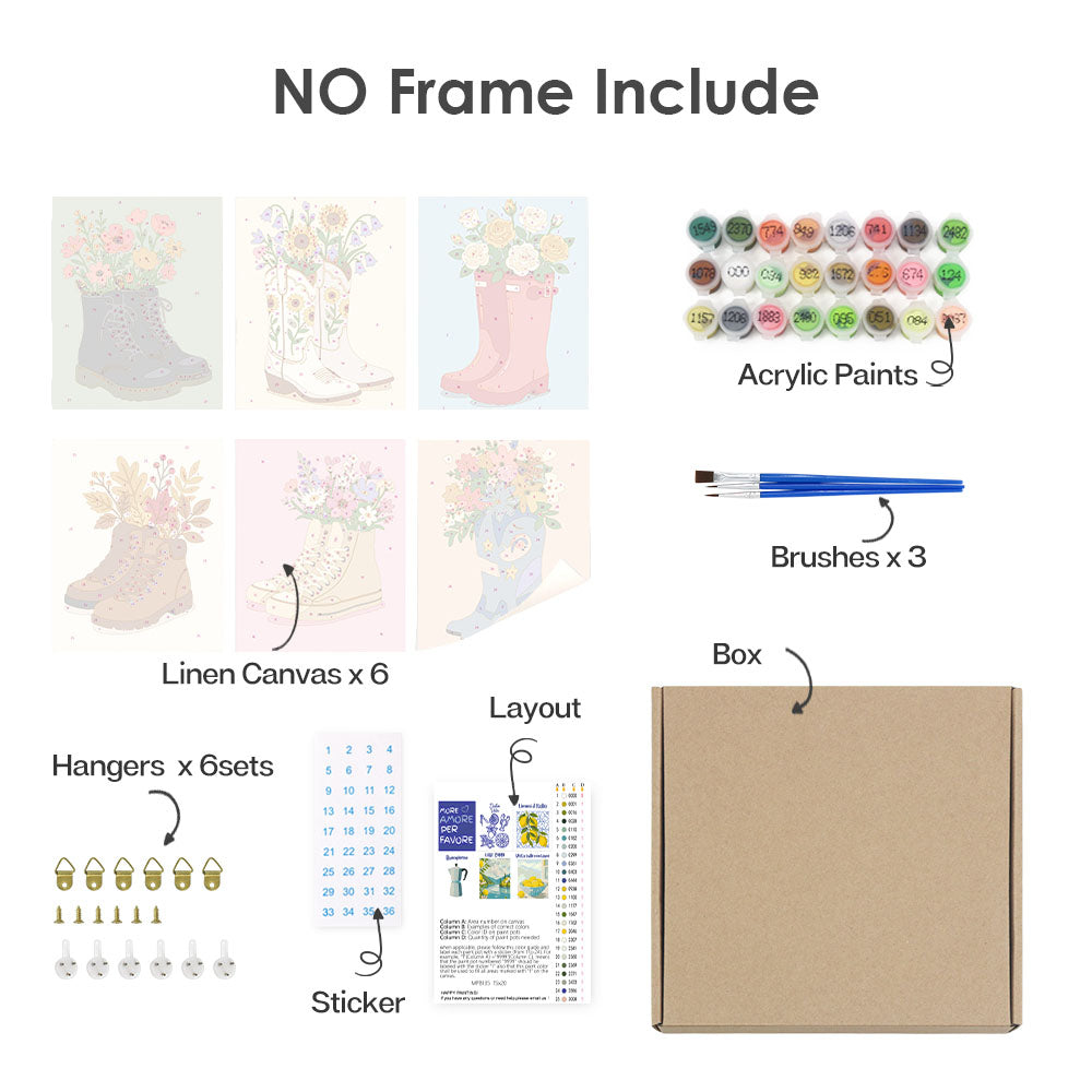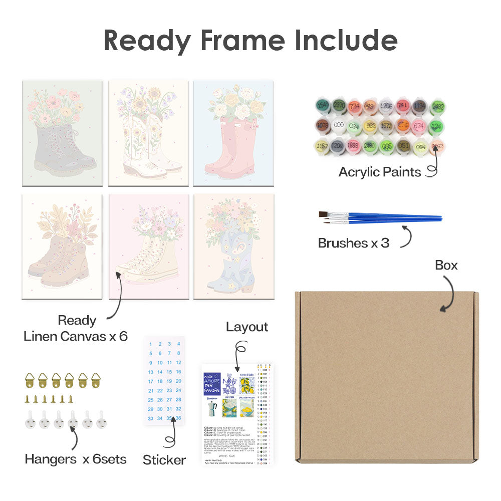 Entdecken Sie alle wichtigen Dinge, die in unserem Malen-nach-Zahlen-Set ordentlich verpackt sind. Da jede Komponente beschriftet und einsatzbereit ist, können Sie sich ganz auf Ihre künstlerische Reise konzentrieren. Von den leuchtenden Farben bis zu den Präzisionspinseln haben wir dafür gesorgt, dass nichts zwischen Ihnen und Ihrer Leinwand steht. Dieses Set ist sowohl für Anfänger als auch für erfahrene Künstler geeignet und bietet ein reines, ungestörtes Malerlebnis.
