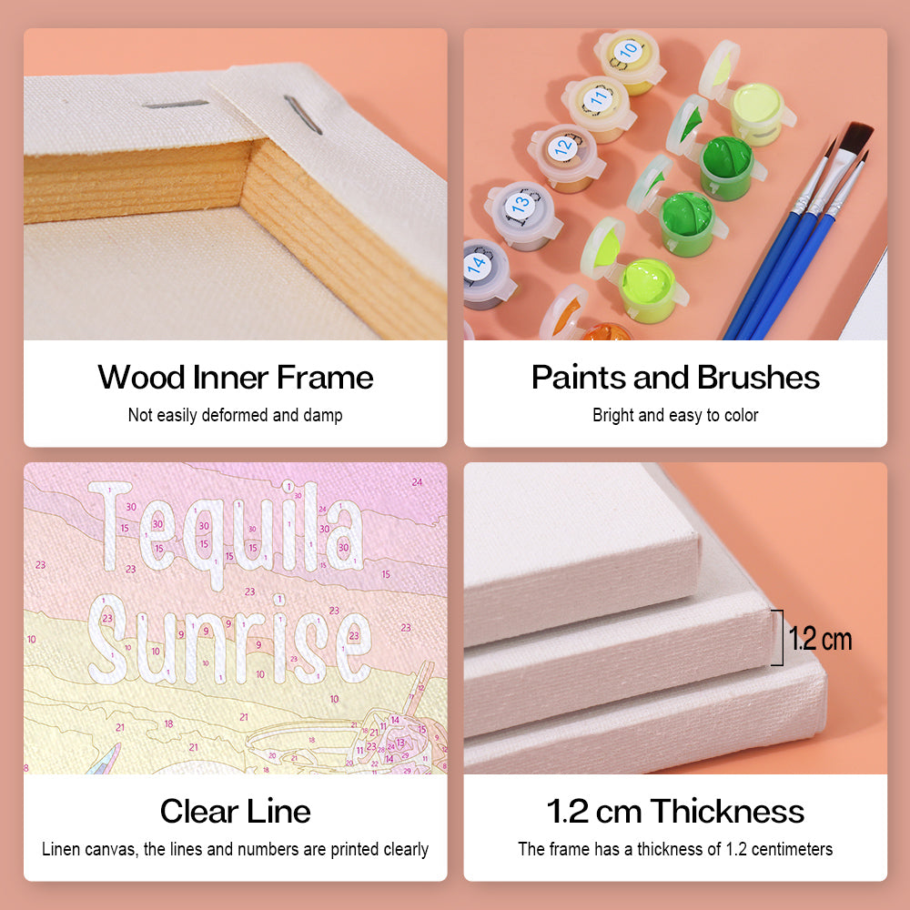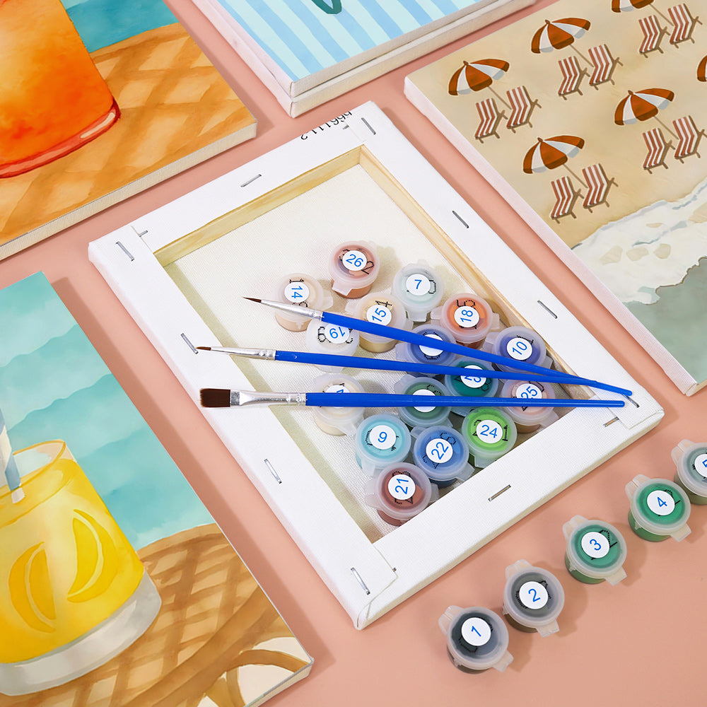 Enthüllen Sie alles Wesentliche ordentlich verpackt in unserem Malen nach Zahlen-Kit. Wenn jede Komponente beschriftet und einsatzbereit ist, können Sie sich ausschließlich auf Ihre künstlerische Reise konzentrieren. Von den leuchtenden Farben bis hin zu den Präzisionspinseln haben wir dafür gesorgt, dass nichts zwischen Ihnen und Ihrer Leinwand steht. Dieses Kit ist sowohl für Anfänger als auch für erfahrene Künstler geeignet und bietet ein reines, ununterbrochenes Malerlebnis.