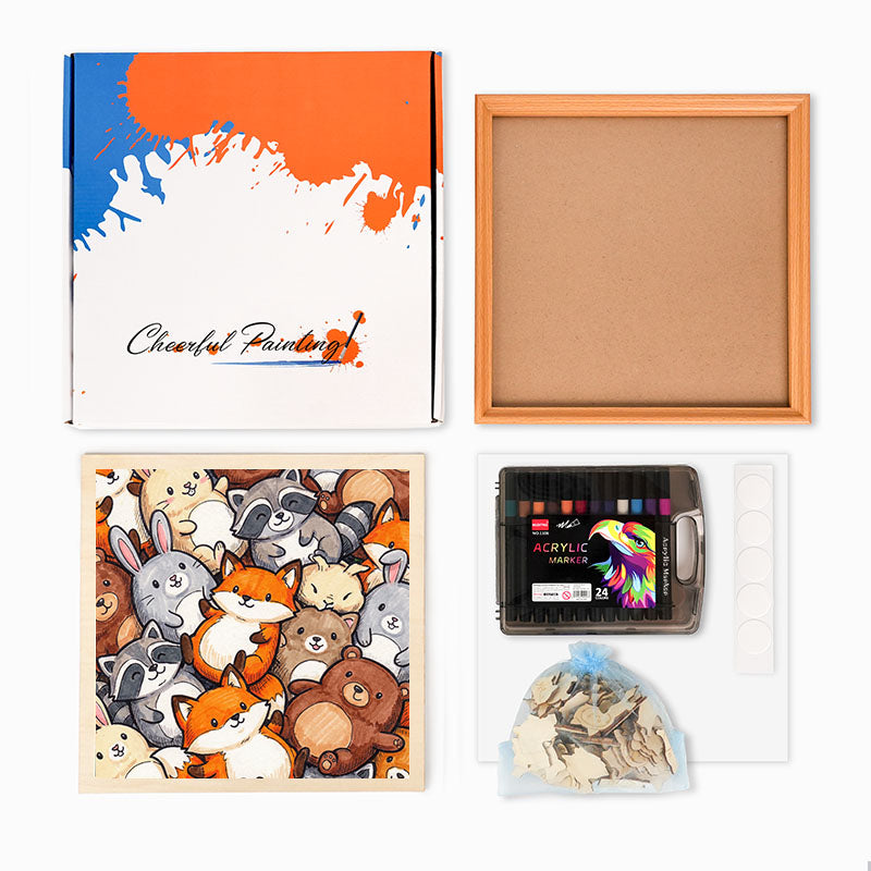 Jedes Set besteht aus wunderschön geschnittenen Holzteilen, die sich zu einer bezaubernden Illustration zusammensetzen lassen und darauf warten, von dir mit Farbe zum Leben erweckt zu werden.